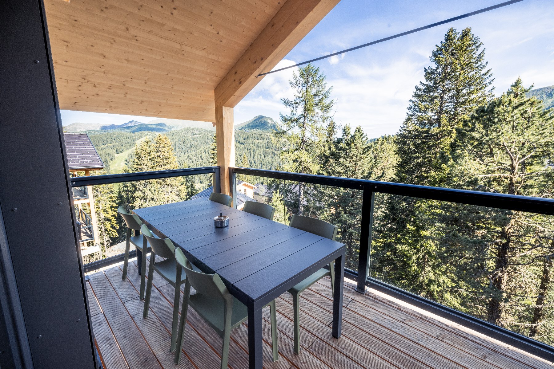 Prostorné terasy s dechberoucím výhledem na alpské vrcholy vytvářejí dokonalé místo pro chvíle klidu i společných zážitků. Vychutnejte si ranní kávu na čerstvém horském vzduchu, večerní sklenku vína při západu slunce nebo grilování s rodinou a přáteli pod širým nebem. Atmosféra dlouhých letních večerů a jedinečné ubytování v Alpách promění váš pobyt v opravdovou horskou pohodu a perfektní místo pro relaxaci.